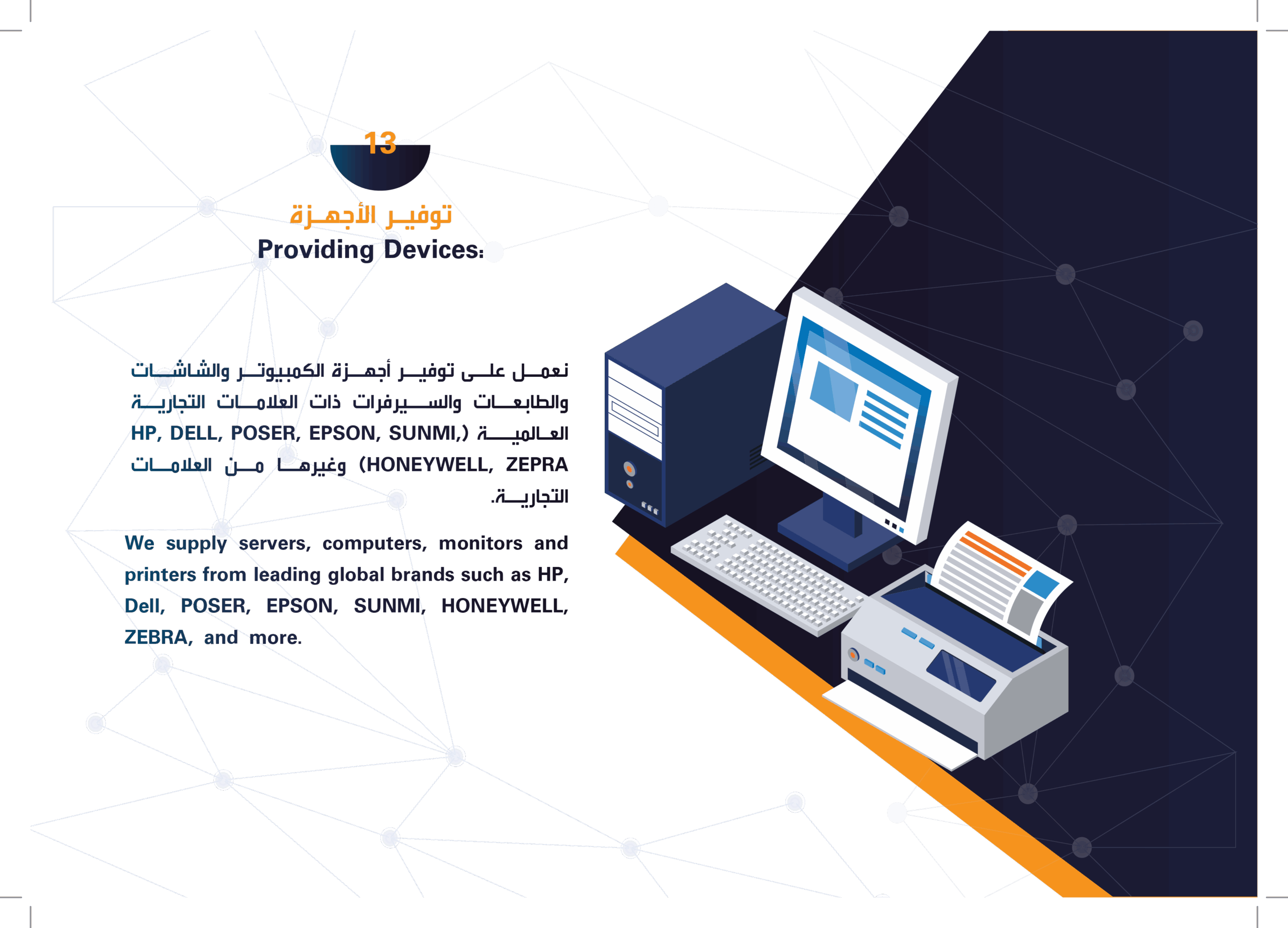 توفير الأجهزة:-نعمل على توفير أجهزة الكمبيوتر والشاشات والطابعات والسيرفرات ذات العلامات التجارية العـالميـة (HP, DELL, POSER, EPSON, SUNMI, HONEYWELL, ZEPRA) وغيرها من العلامات التجارية. Please enable JavaScript in your browser to complete this form.Please enable JavaScript in your browser to complete this form.الاسمرقم الهاتفالبريد الإلكترونيالموضوع الخدمات الموضوع رسالتك الخدمات1- خدمة السيرفرات السحابية .2- خدمة التخزين السحابي لمحتوى السيرفر .3- خدمة التخزين السحابية الآلي لملفات معينة .4- تجهيز داتا سنتر متكاملة لجميع السيرفرات5- ربط عدة شبكات في شبكة واحدة .6- ربط الأنظمة المحاسبية .7- ربط أجهزة بصمة الفروع مع الإدارة .8- اعدادات وتجهيز السنترال .9- امن الشبكات Palo Alto , Fortinet , Cisco , F5 .10- مراقبة الشبكات (SIEM) Splunk , QRadar .11- مكافح الفيروسات وإيجاد حلول لمشاكل التشفير .12- تركيب الكاميرات .13- توفير أجهزة الكمبيوتر والسيرفرات والشاشات والطابعات .أخرىChoice 19رسالتكإرسال