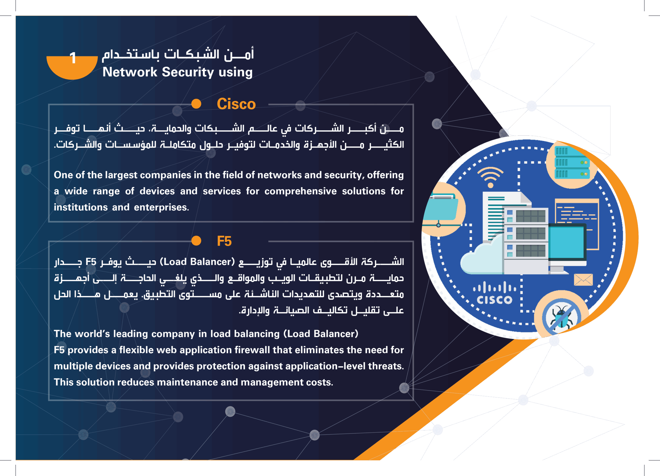 الشــركة الأقــوى عالميا في توزيــع الأحمال (Load Balancer) حيــث يوفر F5 جــدار حمايــة مرن لتطبيقات الويب والمواقع والــذي يلغـي الحاجــة إلــى أجهــزة متعـددة ويتصدى للتهديدات الناشئة على مســتوى التطبيق. يعمــل هــذا الحل على تقليل تكاليف الصيانة والإدارة.